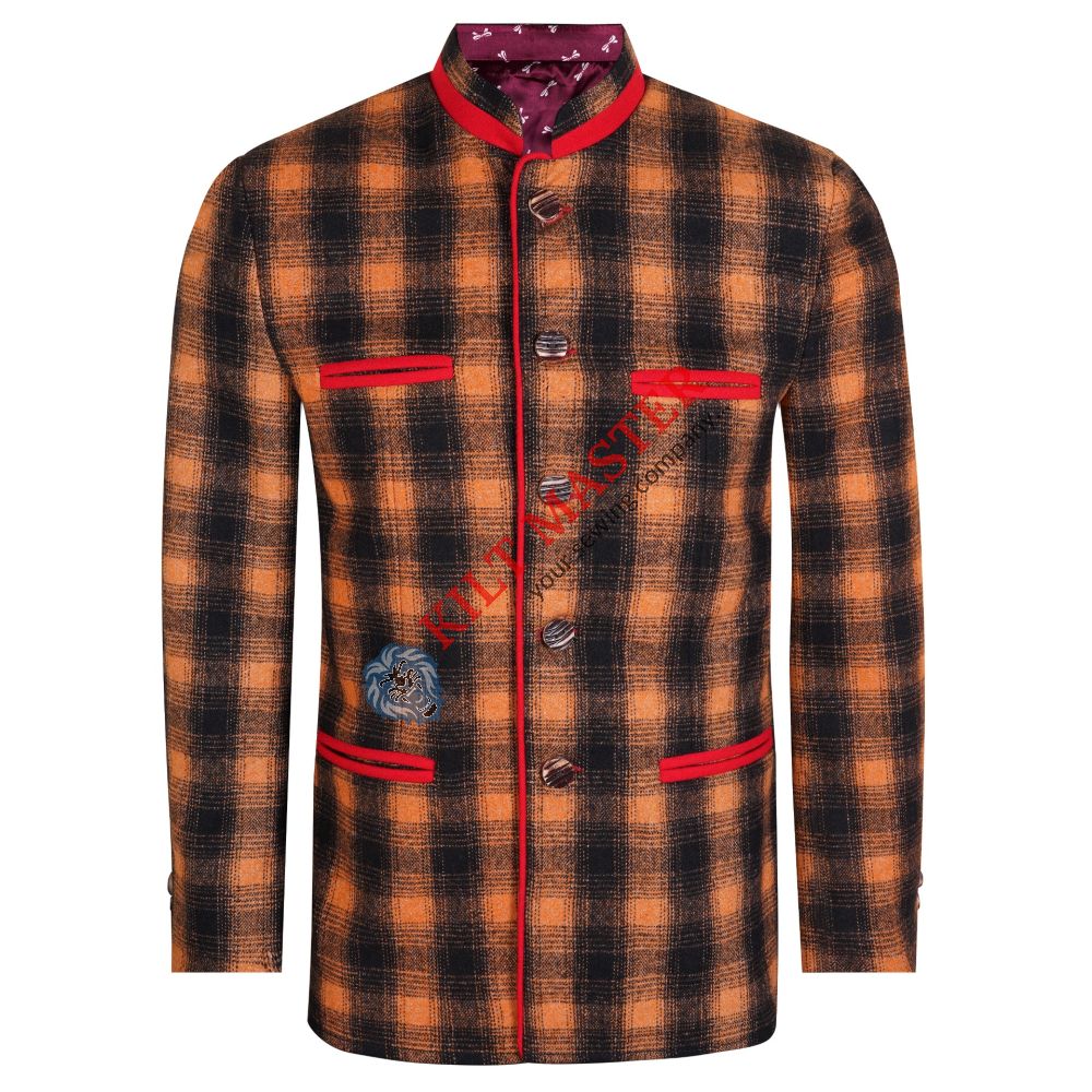 1. What makes the Black and Orange Wool German Bavarian Trachten Jacket special?