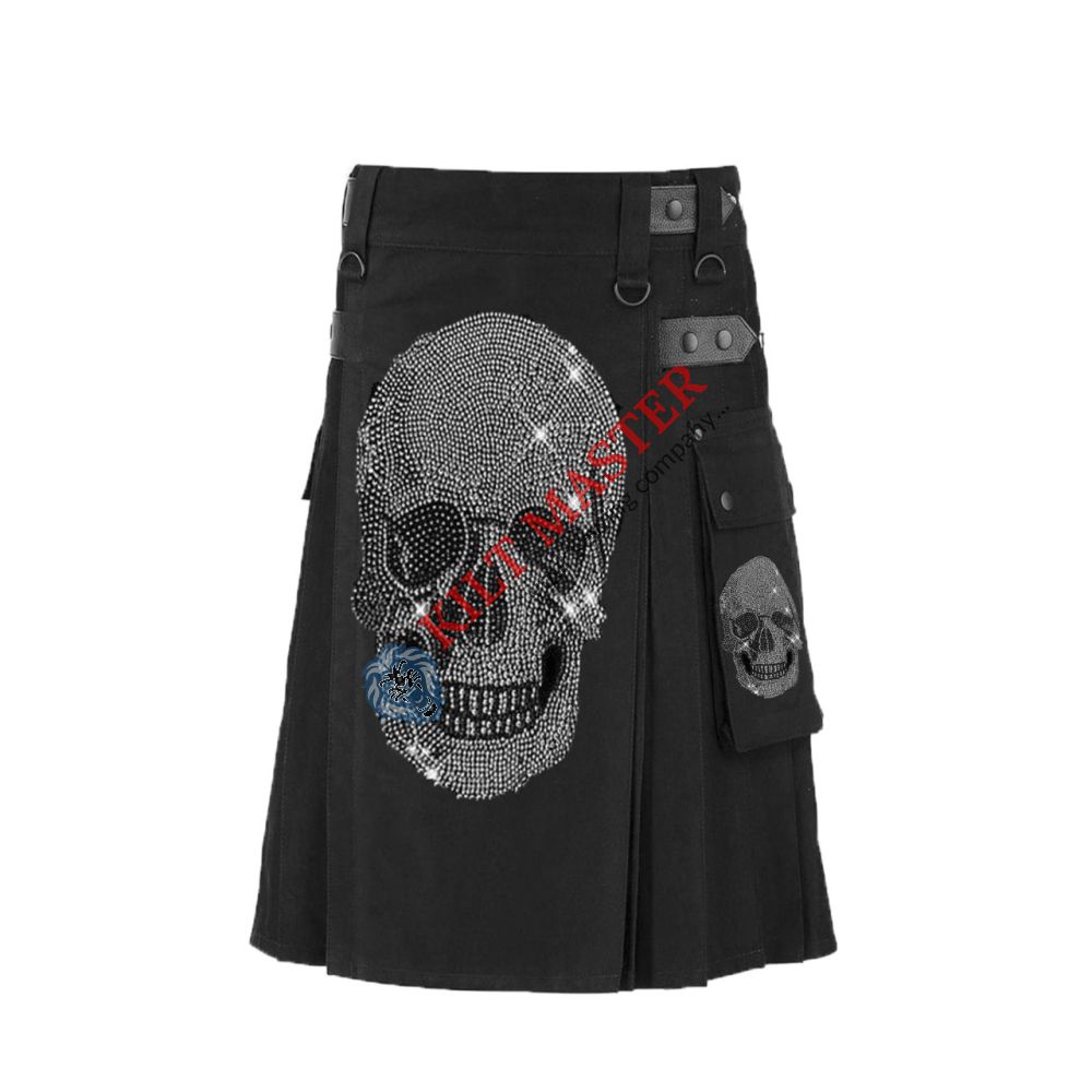 1. What is a Black Scottish Kilt with Rhinestone Skull Design?