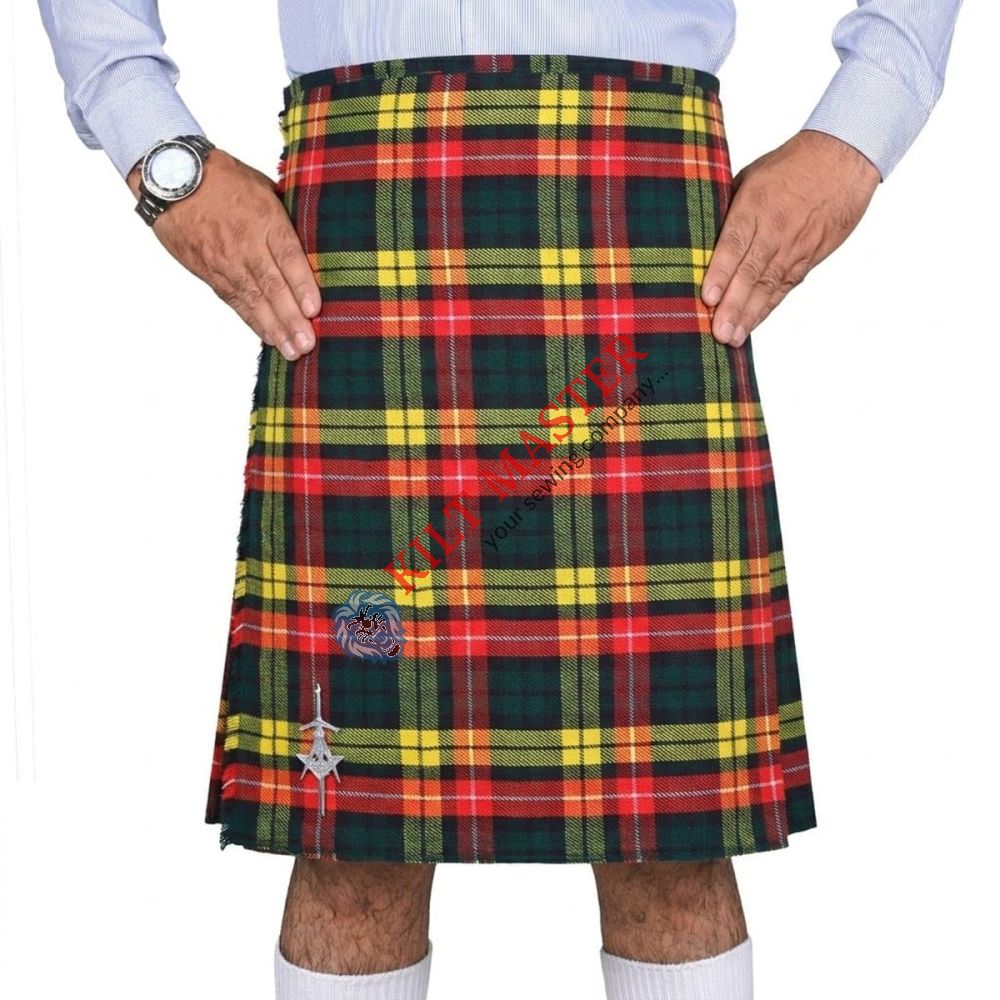 The Buchanan Tartan Kilt is usually made with high-quality wool or wool-blend fabric. These materials are chosen for their durability, warmth, and traditional look. Wool is a natural fiber that breathes well and feels comfortable against the skin. Our kilts are designed to last many years while maintaining their beautiful appearance. The fabric's weight and finish are carefully selected to ensure your custom Buchanan tartan kilt is both stylish and functional, suitable for formal events or everyday wear. You can trust that each kilt is crafted with attention to detail and authenticity.