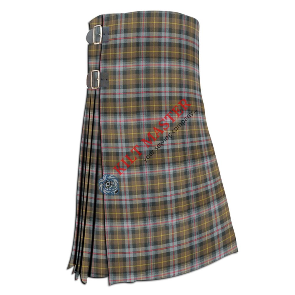 The Farquharson Weathered Tartan Kilt brings together classic tradition and modern comfort. Made from top-quality acrylic wool, it feels soft, keeps you warm, and lasts long. It features strong leather straps and shiny buckles for a neat, stylish finish. The waistband is adjustable to give you a better and more relaxed fit.
