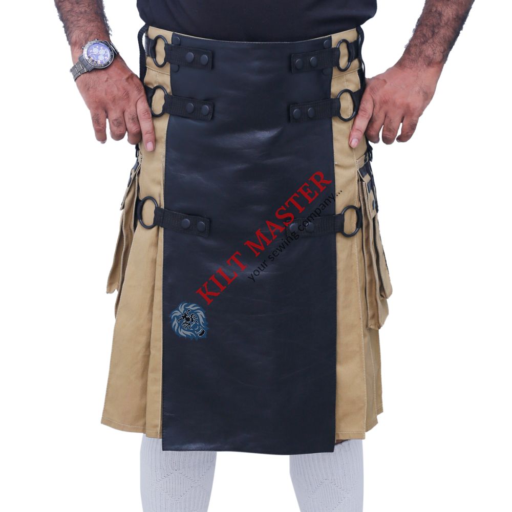 This durable hybrid kilt is crafted from high-quality, tough fabrics designed to withstand daily wear and outdoor activities. The combination of strong textiles and reinforced stitching helps ensure longevity. The tactical kilt with leather apron uses genuine or high-quality faux leather, adding style and durability. The hybrid cargo kilt also features multiple secure pockets for your gear. All these features make it a stylish tactical kilt that is built to last, whether you're outdoors or just want a fashionable piece for regular use.