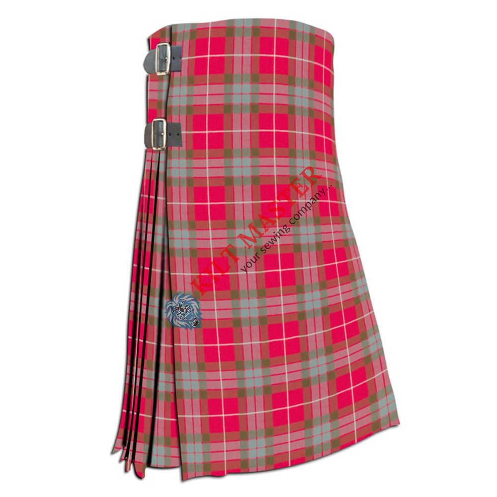 The Fraser Red Weathered Tartan Kilt is a traditional Scottish kilt made from durable tartan fabric. It features a weathered look, giving it a unique, vintage style. This unisex, made-to-measure men's kilt suits adult wearers of all genders. It is popular for Highland wear, clan events, and costume uses. The Fraser tartan kilt is known for its rich red design and weathered appearance, making it a perfect choice for those who love a classic, yet distinctive traditional Scottish kilt.