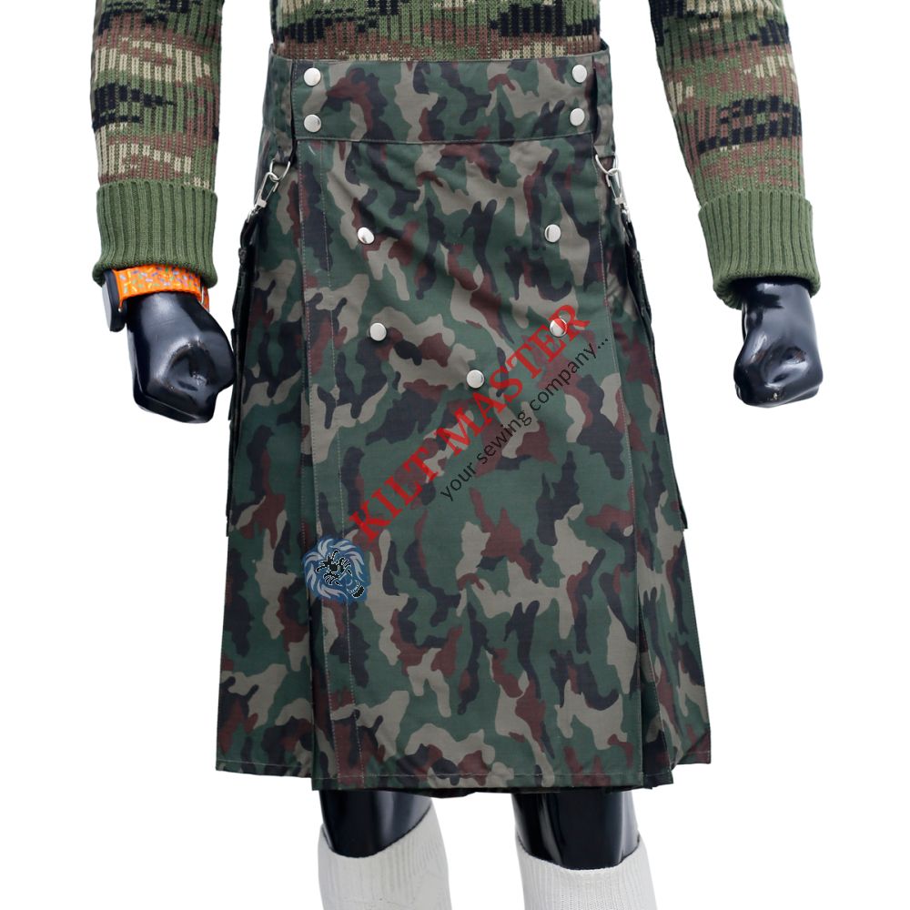 Our Green Camo Detachable Pocket Kilt is crafted from high-quality, durable fabric. It offers a stylish camouflage pattern that is perfect for outdoor activities and everyday wear. The material is designed to be comfortable against the skin and tough enough for rough use. Whether you're in a tactical setting or just want a bold fashion statement, this kilt is built for both style and function. The fabric's breathability keeps you comfortable, while the sturdy stitching ensures longevity. This kilt is ideal for people who want a reliable and fashionable camo option that easily moves with them.