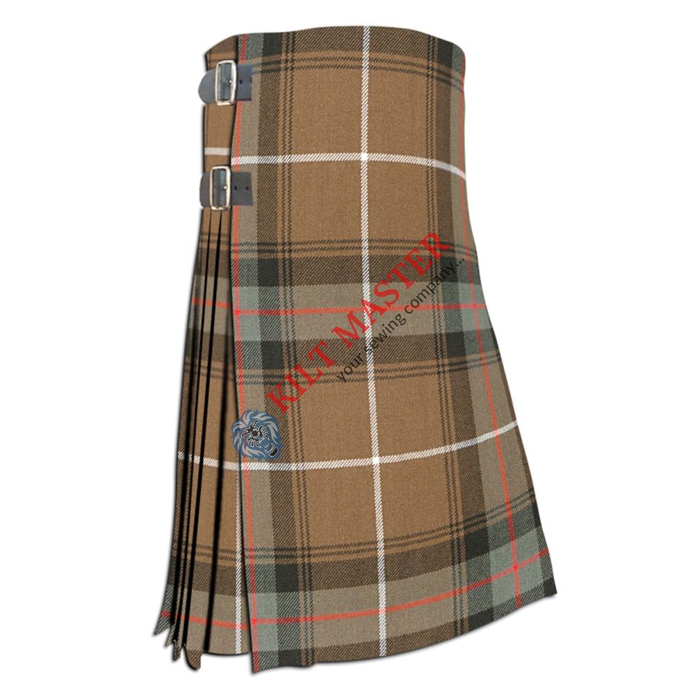 This weathered tartan kilt is a traditional Scottish Highland dress piece. It features a weathered look that gives it a classic, vintage appeal. Made for adults, it's designed to suit both men and women. The kilt is made to measure, ensuring a perfect fit for each individual. It's part of the Scottish hunting kilt collection, showcasing the MacDonald clan tartan. This Highland dress kilt is ideal for those who want to embrace authentic Scottish heritage with a weathered style that stands out. It’s perfect for special occasions or casual wear where a touch of Scottish tradition is desired.