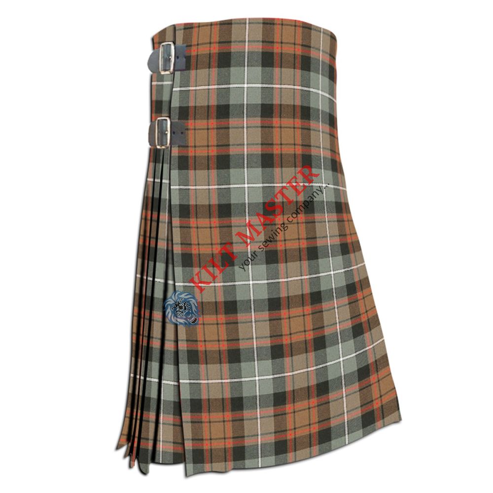 The MacRae Hunting Weathered Tartan Kilt brings tradition and style together. It is made from soft and strong acrylic wool that feels comfortable and lasts long. With real leather straps and shiny chrome buckles, it gives a smart and clean look. The waistband is adjustable, so it fits well and feels good all day.