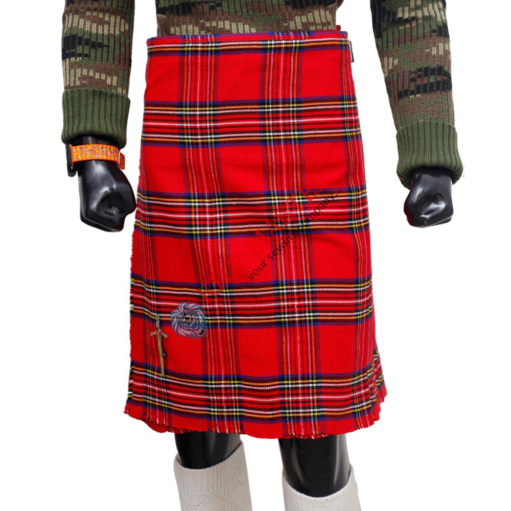 A traditional kilt, like the Royal Stewart Tartan Kilt, uses specific Scottish tartan patterns that represent different clans or families. This kilt is made from the famous Royal Stewart Clan Tartan, which is the official clan tartan of the Royal Stewart family. It is crafted from high-quality fabric and designed to be worn with pride and authenticity. Traditional kilts are usually made to measure, providing better fit and comfort. Wearing a traditional Scottish Kilt connects you to Scottish history and culture. It is often used for formal occasions, Highland games, or cultural events, making it more special than casual Kilts.