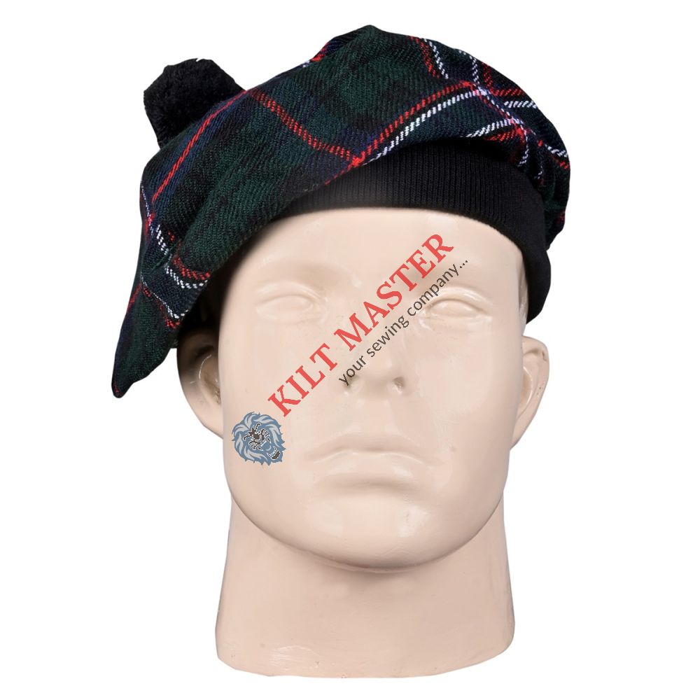 Material: Acrylic Wool Tartan: Scottish National Rib: Elastic Black Pompom Color: Black / Matching Lining: Cotton Size: Free / Adjustable Fit Unisex: Men, Women, Kids, LGBTQ
